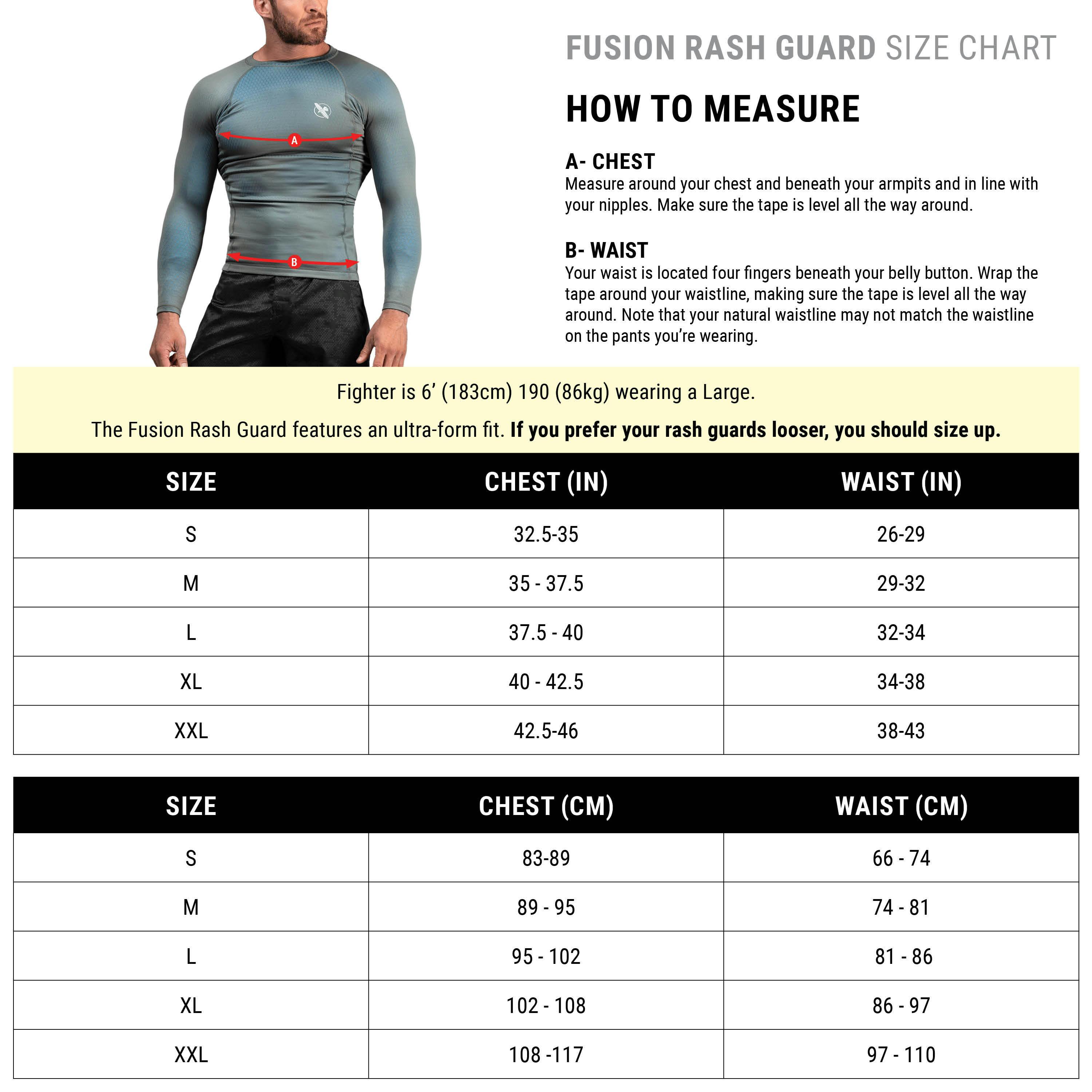 NOTE: The Fusion Rash Guard features a traditional ultra-form fit. If you prefer your rash guards looser, you should size up.