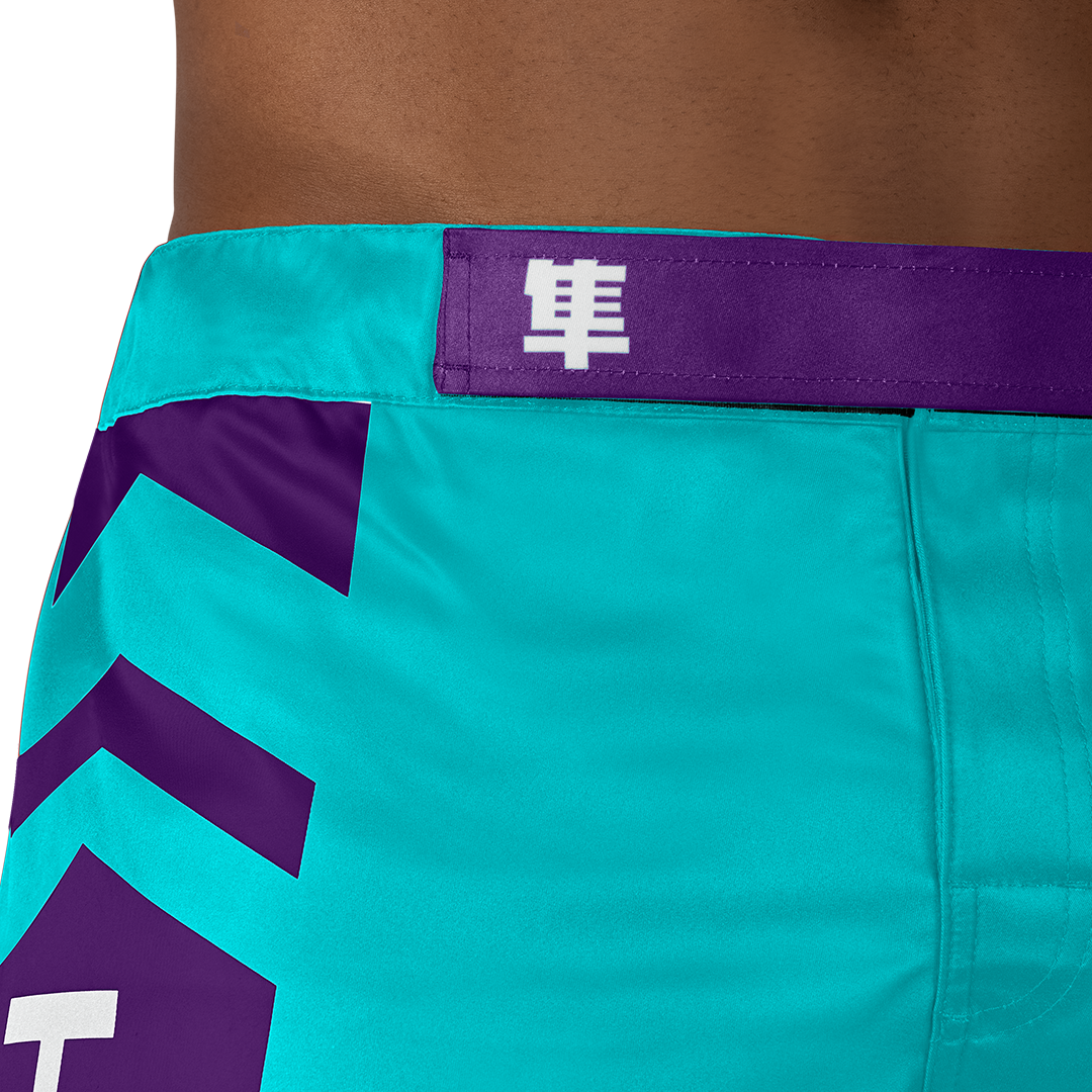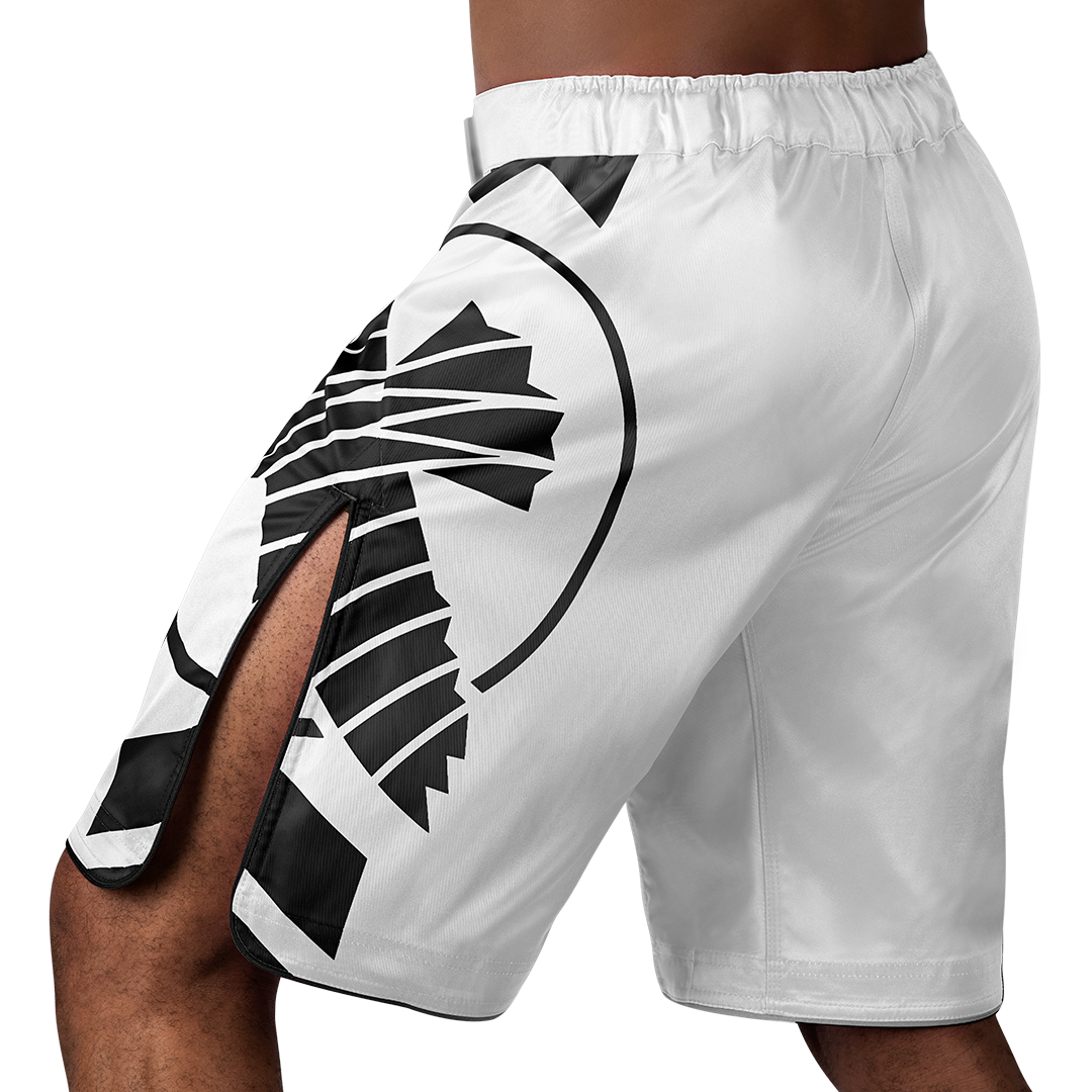 Extended, pro fighter side slits are the pinnacle feature of the Icon Fight Shorts. The longer length delivers an expanded range of motion for the highest kicks and completely unrestricted flow for grappling.