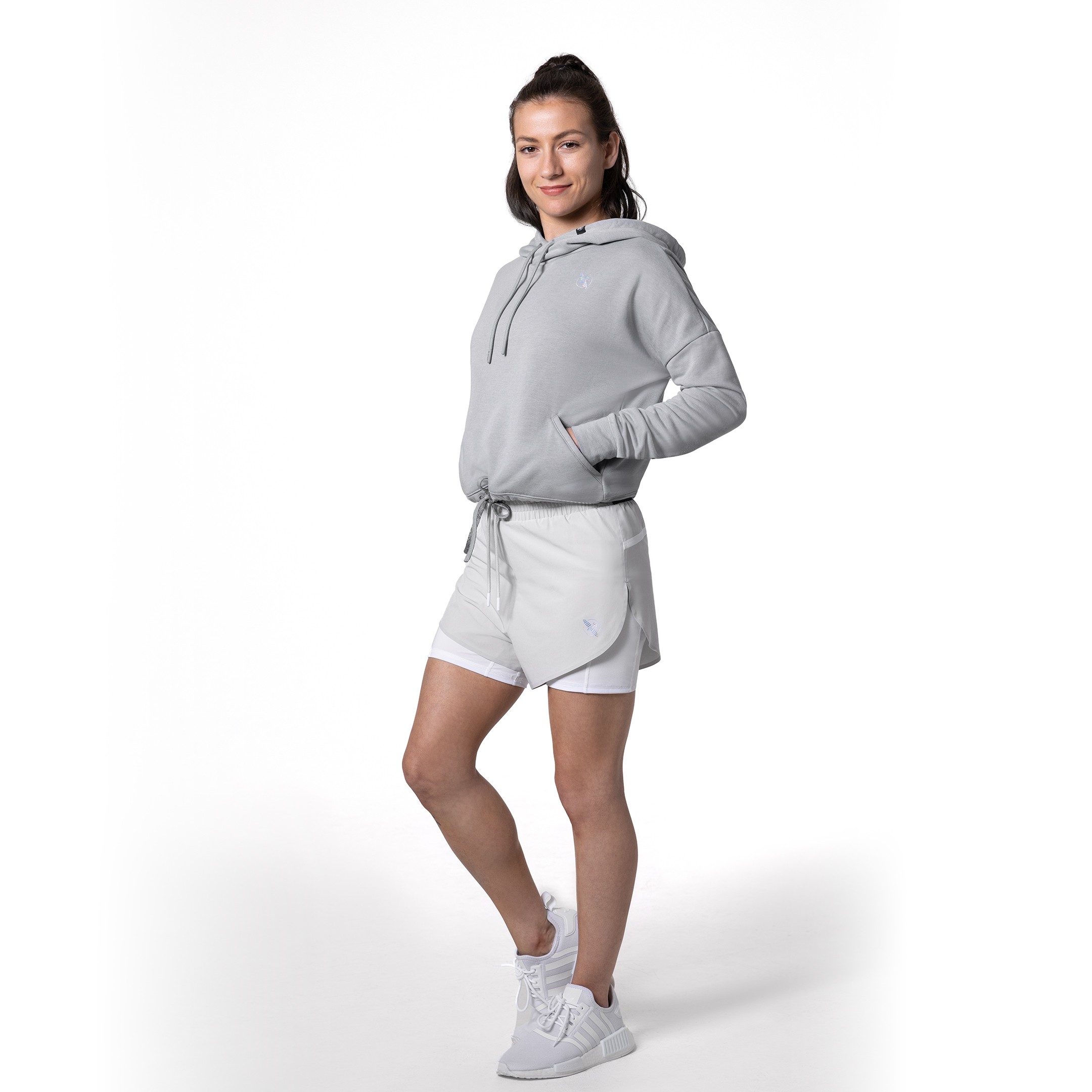 Cropped with an oversized fit, this hoodie offers the perfect silhouette for layering or pairing with your high-waisted favorites. Its relaxed look keeps you comfy post-practice.